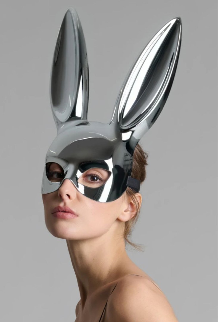 Серебристая маска кролика от Maison Close - аксессуар, который дополняет дерзкий и одновременно утонченный образ.