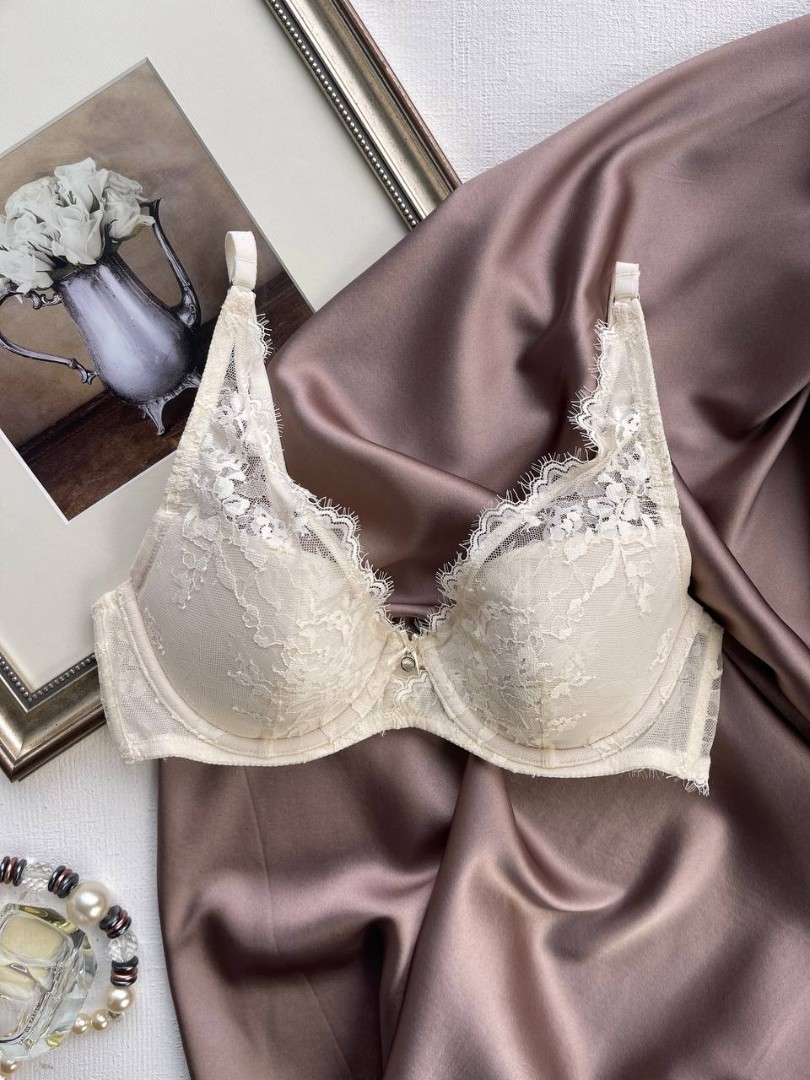 Новинка от Emporio Armani - кружевной бюстгальтер с формованной чашкой на косточках. Модель с легким эффектом пуш-ап создает гармоничный силуэт. Особое внимание заслуживает изысканное кружево с нежной цветочной вышивкой.