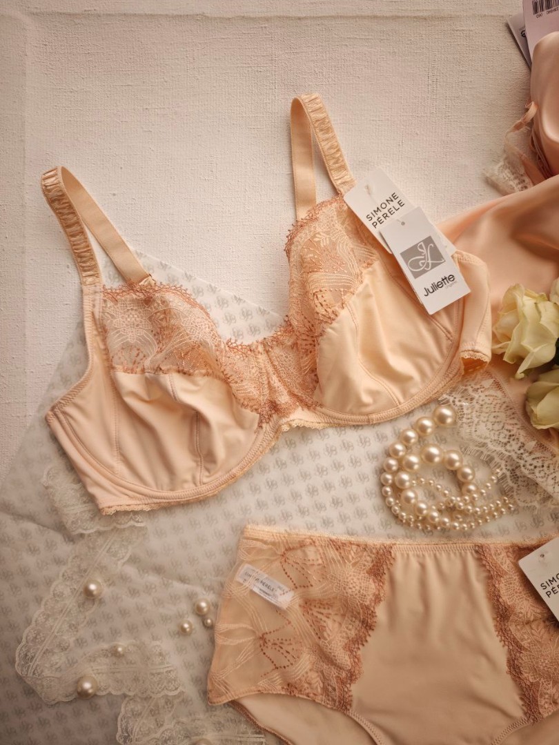 Классический бюстгальтер Simone Perele, который сочетает минималистичную гладкость ткани и изысканные кружевные детали.