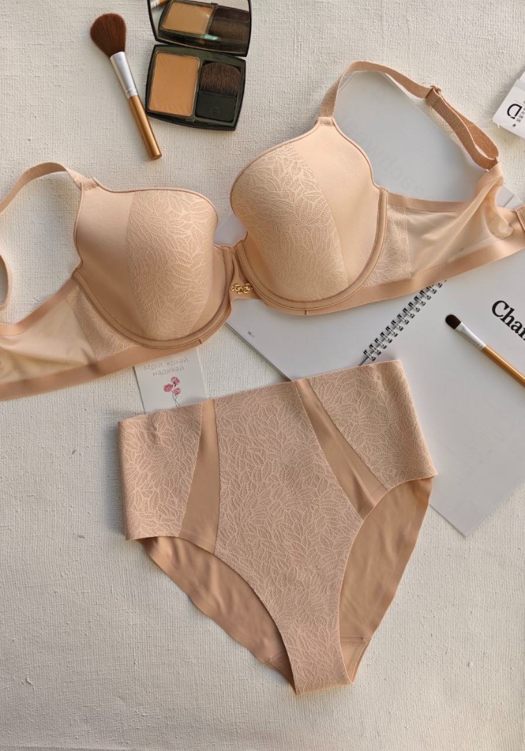 Особое внимание привлекают прозрачные боковые элементы и полностью прозрачная задняя часть. Завершающий штрих - декоративные элементы золотого цвета между чашками. Купить пудровый бюстгальтер Chantelle на сайте нашего магазина можно в комплекте с трусиками этого же бренда. Мы поможем офррмить доставку по Киеву и в другие города Украины.