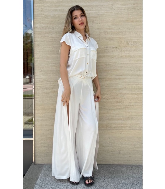 Летний комплект от MARC & ANDRE - воплощение непринужденной элегантности и утончённого стиля. Комплект состоит из воздушных блузы и брюк, идеально подходящих для жарких летних дней.