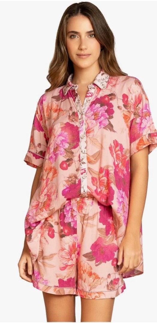 Костюм Maaji состоит из рубашки и шорт с цветочным принтом. Изделие выполнено из вискозы, которая быстро сохнет и позволяет телу дышать.