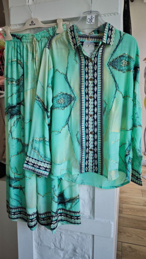 Костюм легко адаптируется под разные стили - сочетайте его со шлепанцами и плетеной сумкой для дневного выхода или с каблуками и яркими аксессуарами для вечернего мероприятия. Купить бирюзовый или голубой шелковый костюм рубашка и штаны Pahiesa Formentera можно в мультибрендовом магазине Juliette с доставкой по всей Украине.