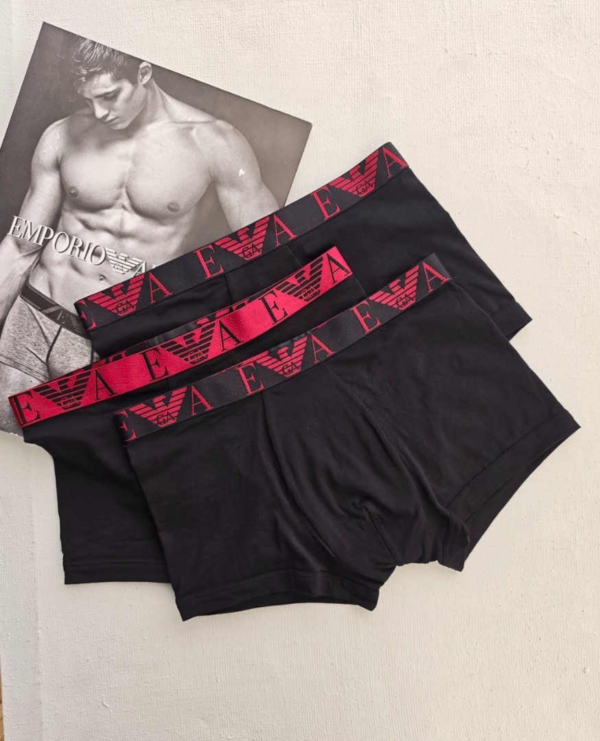 Комплект из 3-х боксеров Emporio Armani - черные с красными вставками. Ощути премиальное качество Armani - это не просто белье, это уверенность и комфорт каждый день!