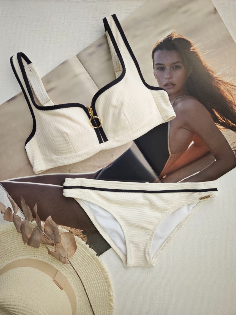 * Купальный бюстгальтер в стиле бандо с изысканной застежкой-змейкой между чашечками.