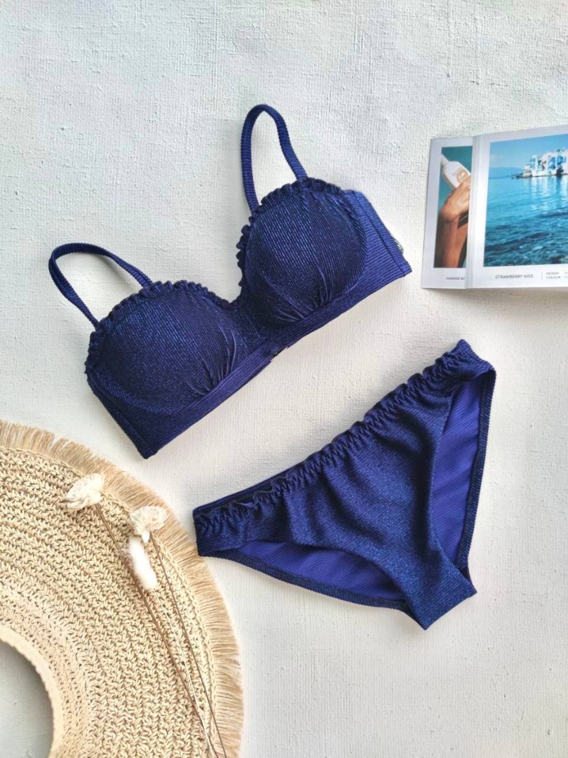 Неповторимого шика этой модели добавляют рюши по верхнему краю чашек и на поясе слипов. Купить синий раздельный купальник Toccata можно на нашем сайте с доставкой в Винницу, Сумы и другие города Украины.