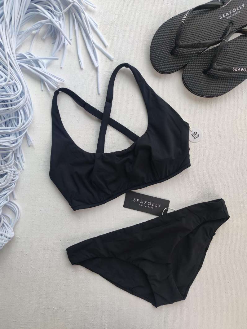 Раздельный купальник Seafolly из новой коллекции 2024 года. Купальник в стиле топ-халтер с классическими плавками-слипами.