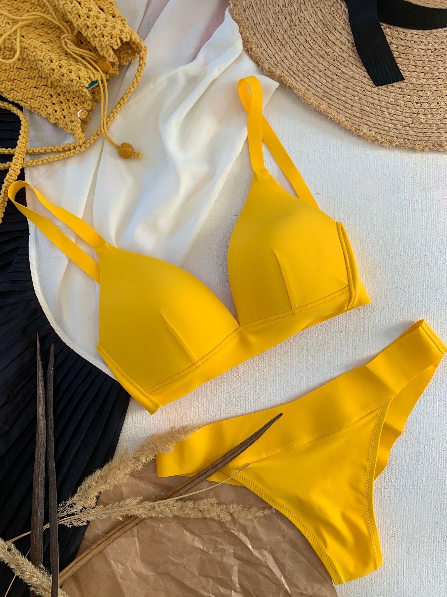 * Лиф с треугольной формой чашечки поддерживает и собирает грудь за счет литого пуш-апа;