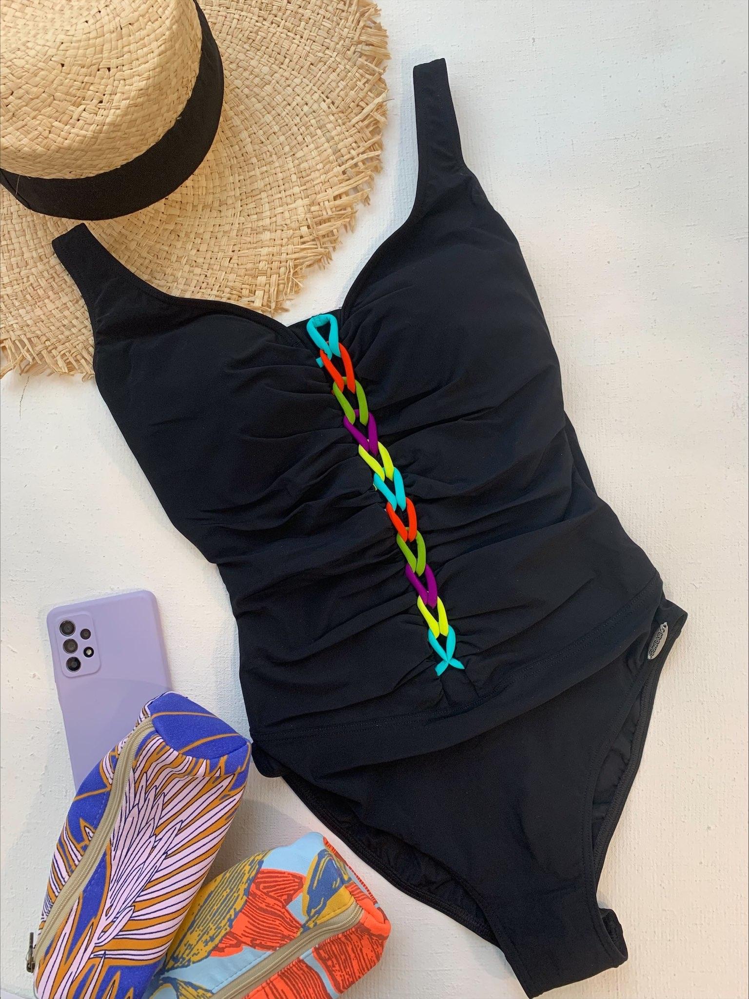 Совместный купальник Sunflair с чашечкой подойдет для бюста с полнотой C, D, E.