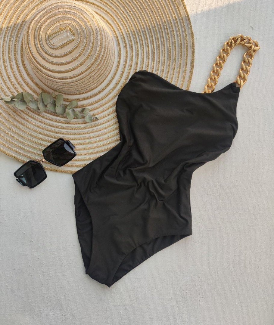 Роскошный цельный купальник CALARENA с асимметричным кроем на одно плечо, украшенным стильной бретелью-цепочкой.