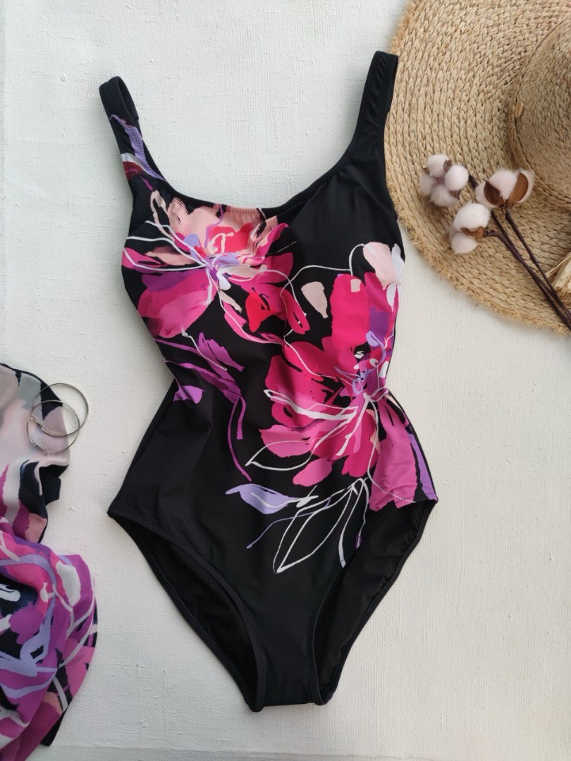 * Яркий цветочный принт на классической черной основе добавляет изюминку.