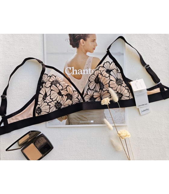 Бюстгальтер-бралет Chantelle з квітковим мотивом втілює ніжність і сміливу спокусу, поєднуючи вишивку у вигляді великих ромашок з делікатним атласним матеріалом.