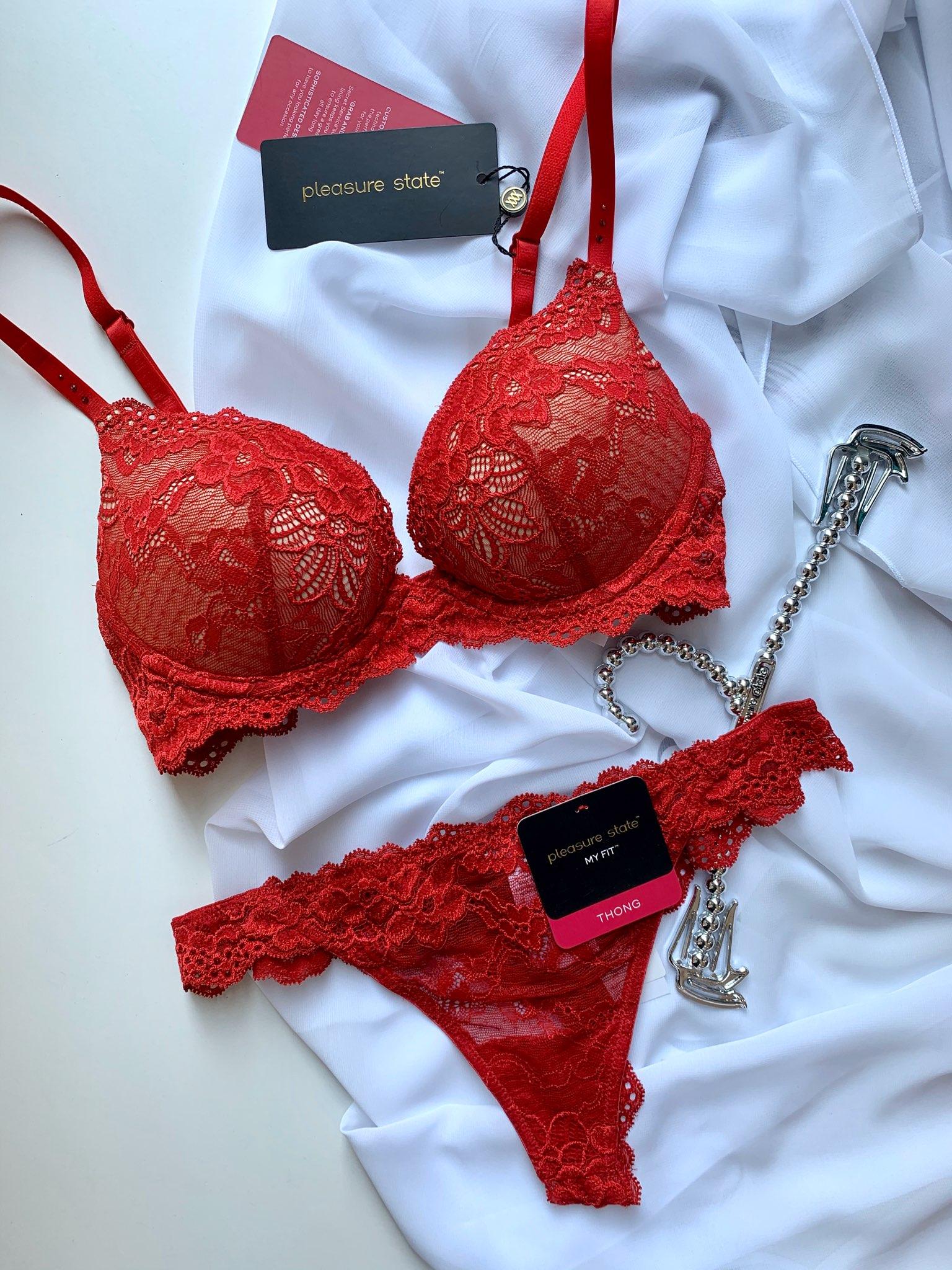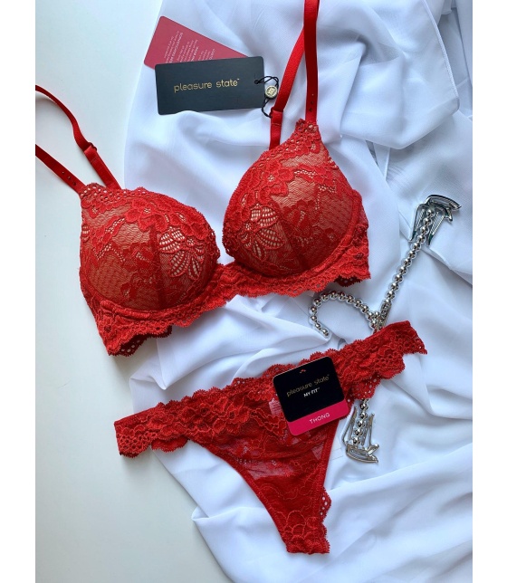 Нова модель бюстгальтера Pleasure State з поролоновими чашками і вишуканим мереживом. Цей модний предмет білизняного гардеробу забезпечує підтримку і створює візуальне збільшення об'єму грудей.