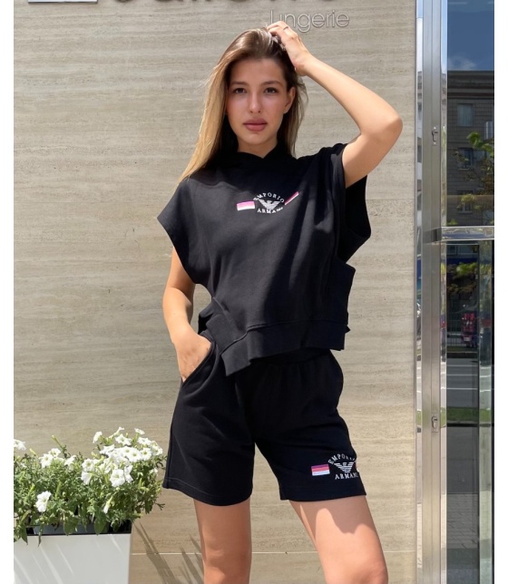 У нашому інтернет-магазині купити чорний комплект футболку з капюшоном і шорти Armani можна швидко та зручно з доставкою у Київ, Івано-Франківськ, Миколаїв, Харків й інші міста України.