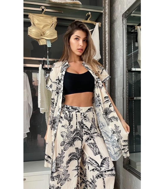 Сорочка і штани від німецького бренду Maryan Mehlhorn з вишуканим плісуванням та красивим флористичним принтом на світлій кремовій тканині.