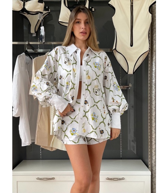 Купити білий з квітковим принтом костюм можна онлайн на Juliette з доставкою у Київ, Івано-Франківськ й інші міста України.