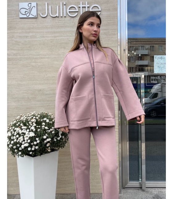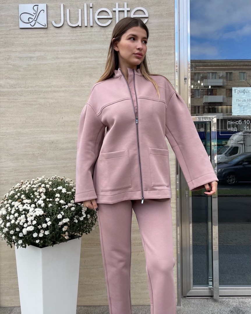 Вільна толстовка на блискавці підходить для будь-якої фігури, вигідно підкреслюючи її переваги. Купити жакет і штани MaxMara в пудровому або чорному кольорі на Juliette можна всього за кілька кліків з доставкою у Київ чи Дніпро, а також будь-яке інше місто України.