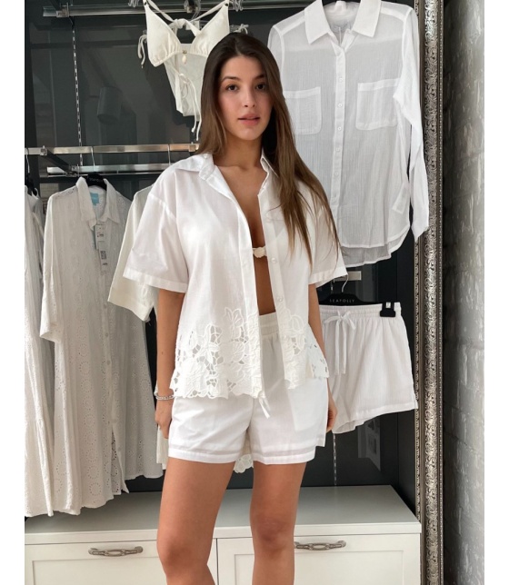 * Сорочка з витонченим мереживним оздобленням і відкладним коміром.