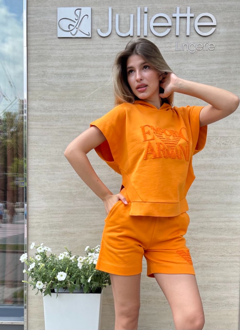 Цей костюм - універсальне рішення для прогулянок набережною або активних подорожей у спекотні літні дні. Він легко комбінується з пляжним взуттям, солом'яними аксесуарами та окулярами, створюючи модний літній лук. Купити футболку і шорти Armani у кольорі манго у нашому інтернет-магазині можна всього за пару кліків з доставкою по всій Україні.