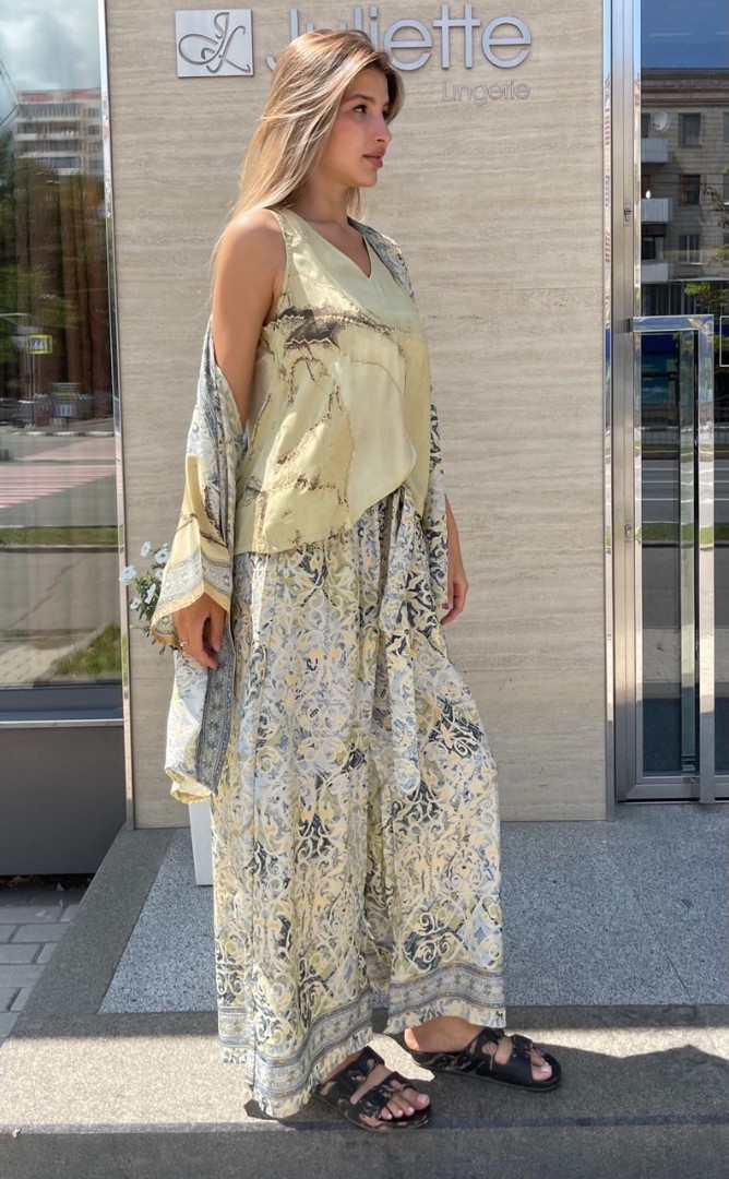 Елегантний шовковий комплект кімоно, топ і штани Pahiesa Formentera - новинка літнього сезону 2025.