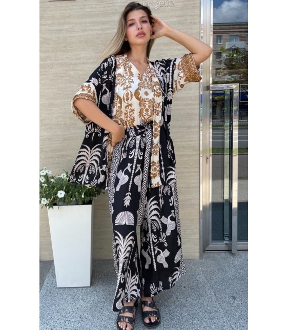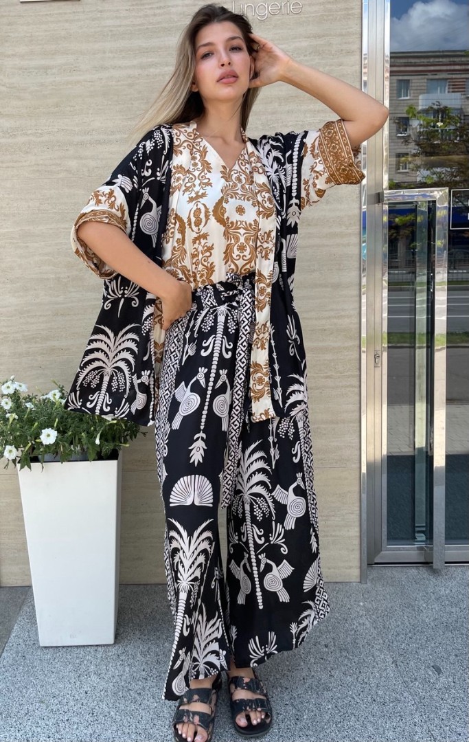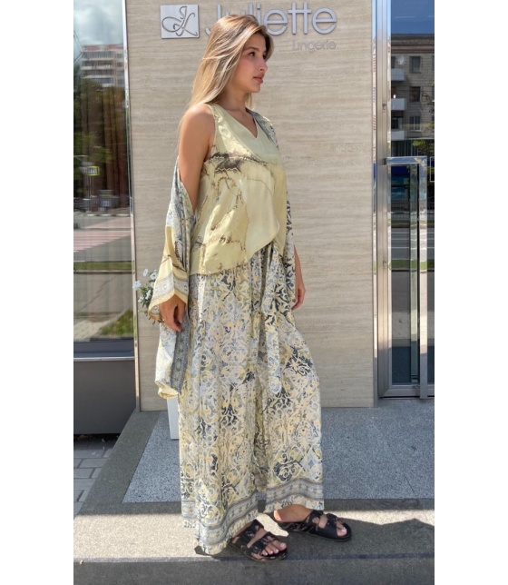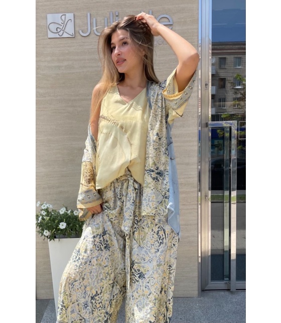 Елегантний шовковий комплект кімоно, топ і штани Pahiesa Formentera - новинка літнього сезону 2025.
