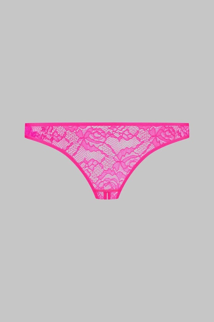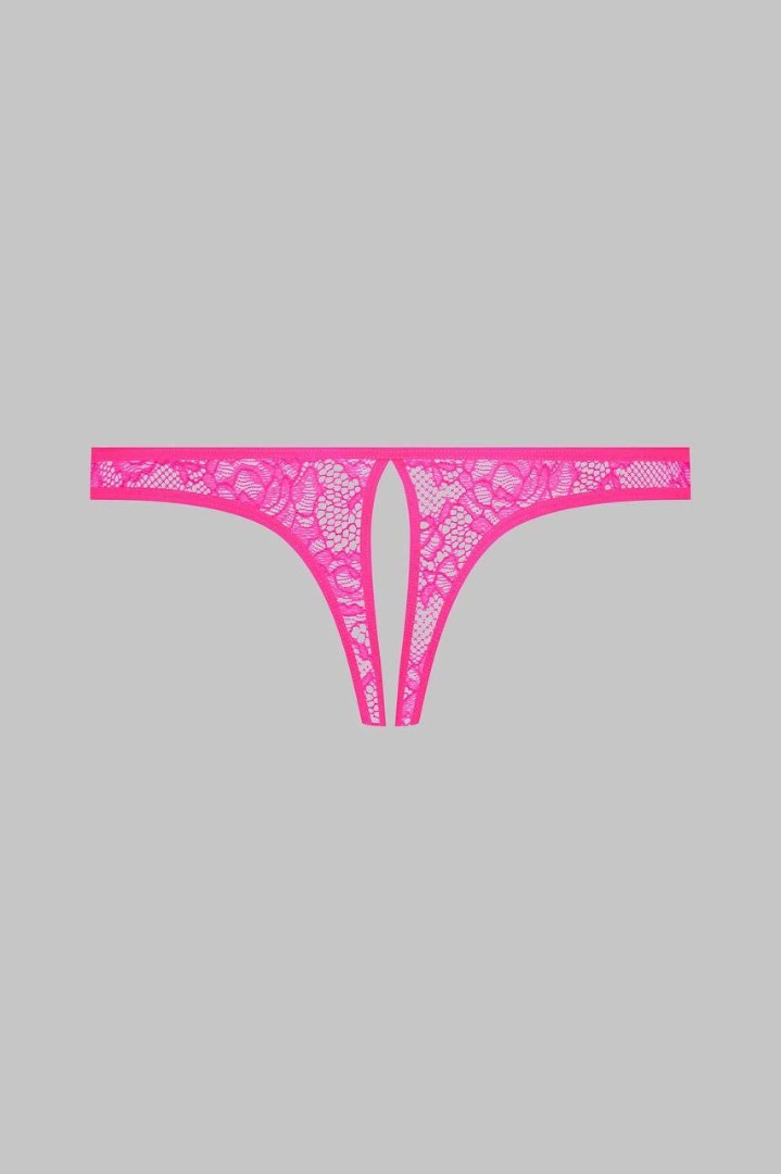 Напівпрозорі відкриті (в інтимній зоні) трусики неонового кольору з мереживним квітковим візерунком із нової колекції французького бренду Maison Close.