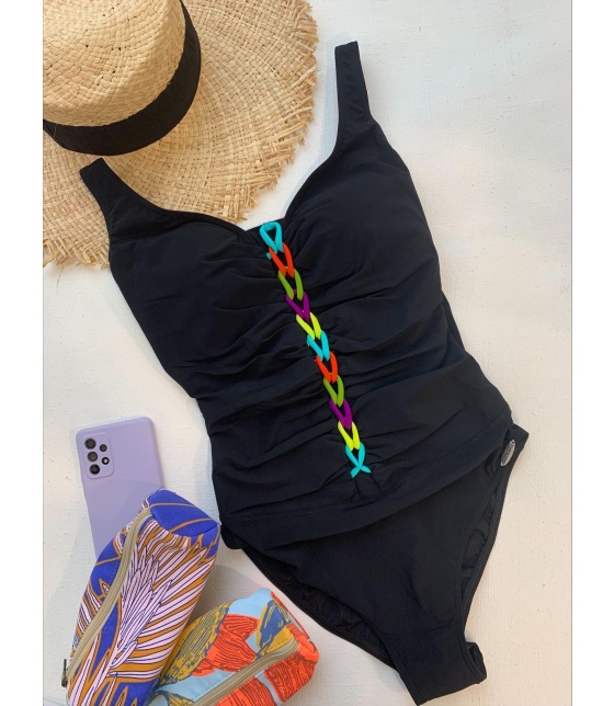 * Матеріал цілісного чорного купальника Санфлаєр з яскравою вертикальною вставкою - поліамід та еластан; * Є підкладка-сітка, яка коригує фігуру;