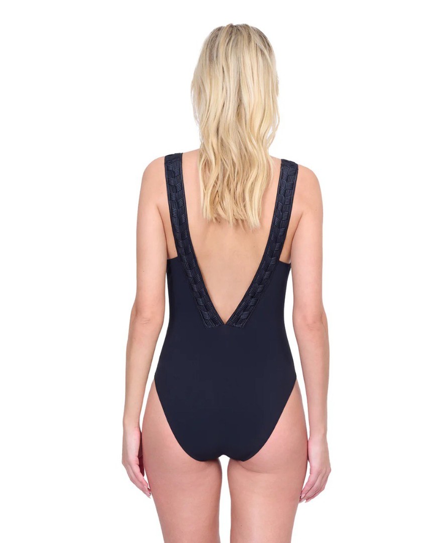 Виразіть себе за допомогою суцільного купальника з нової колекції Gottex. Ця шикарна модель із квадратним вирізом, що акцентує увагу на ключицях, має глибокий трикутний виріз на спині, створюючи розкутий силует.
