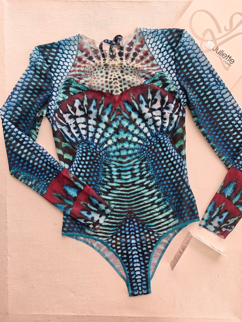 Купальник суцільний Spf від бренду Bip-Bip - втілення французьких інновацій у світі пляжної моди. Модель у небесно-блакитному відтінку з виразним принтом створена з унікальної мікроперфорованої тканини, що пропускає сонячні промені та забезпечує природну рівну засмагу без слідів.